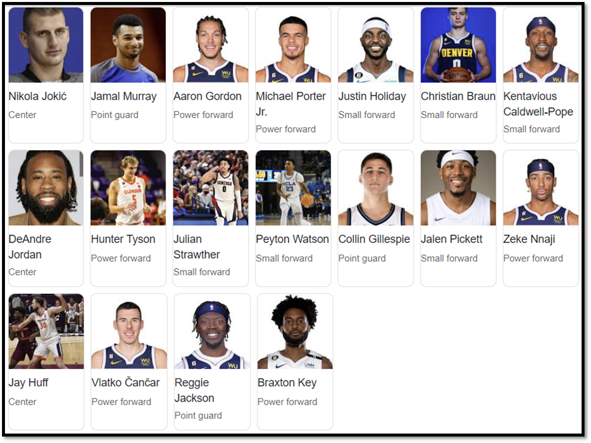 ◆ Denver Nuggets: 2022-2023 시즌 우승팀.
