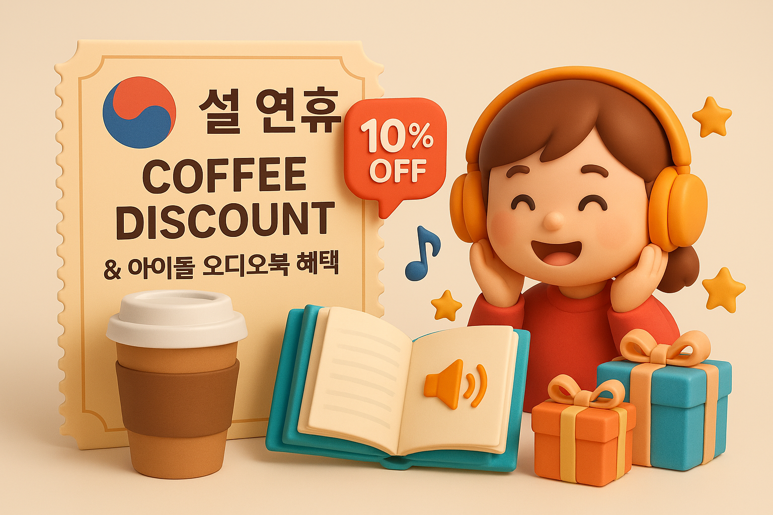 커피 한 잔의 여유, 아이들의 즐거운 오디오 동화, 그리고 0원의 통행료까지! 미리 조금만 알아보고 챙기면 귀성길 스트레스는 절반으로 줄고 행복은 두 배가 됩니다. 오늘 소개해 드린 바우처들을 지금 바로 다운로드해 보세요!