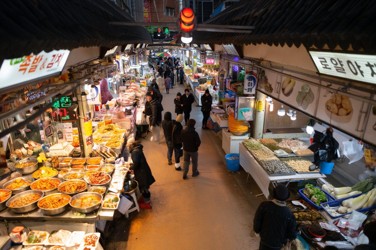 여행의 묘미는 역시 먹는 것이죠. 행궁 옆 지동시장은 '순대타운'으로 대박 유명합니다. 뜨끈한 순대볶음으로 든든하게 배를 채우고, 전통시장 특유의 북적이는 명절 분위기를 느껴보세요. 설 연휴에 방문하면 갓 튀겨낸 도넛과 떡갈비 등 주전부리도 가득합니다.