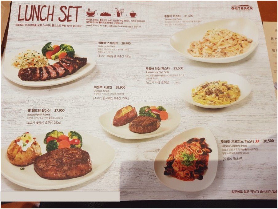 아웃백의 런치메뉴는 다양한 요리로 구성되어 있어 선택의 폭이 넓습니다. 스테이크, 파스타, 샐러드 등 여러 가지 메뉴가 준비되어 있어, 누구나 취향에 맞는 음식을 찾을 수 있습니다. 특히, 아웃백의 스테이크는 그 맛과 질감이 뛰어나 많은 사람들에게 인기가 높습니다.
