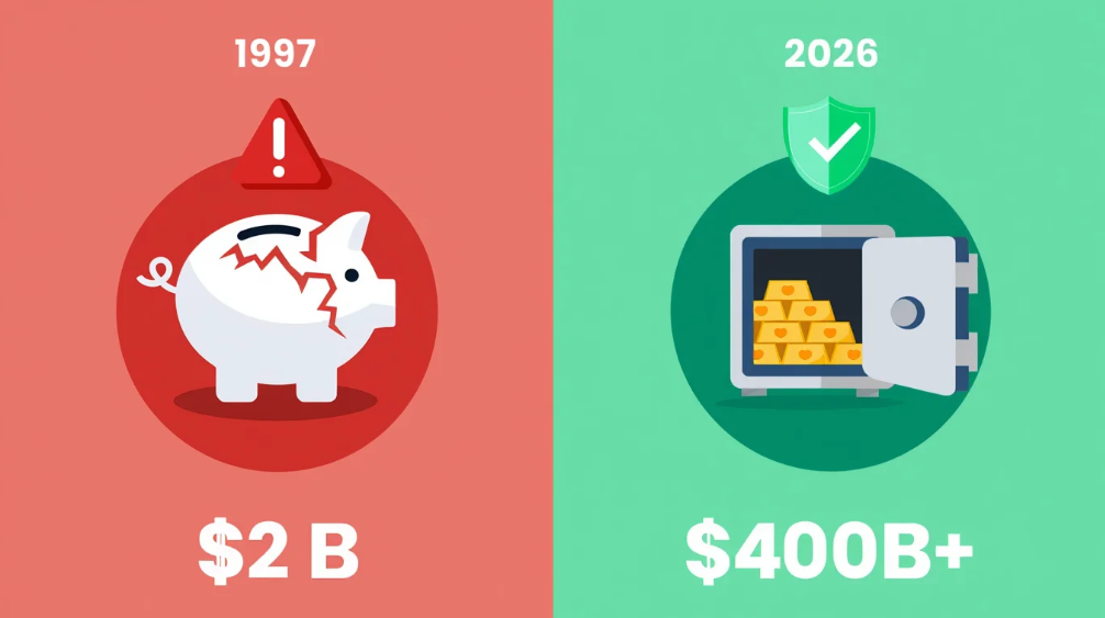가장 큰 차이는 외환보유액의 규모와 성격에 있습니다. 1997년 당시 정부는 환율을 인위적으로 방어하려다 보유액을 탕진하여 위기 직전 가용 외환이 20억 달러 수준까지 떨어졌습니다. 하지만 현재는 4,000억 달러 이상의 넉넉한 외환을 보유하고 있어 국가 부도 가능성은 매우 낮습니다.