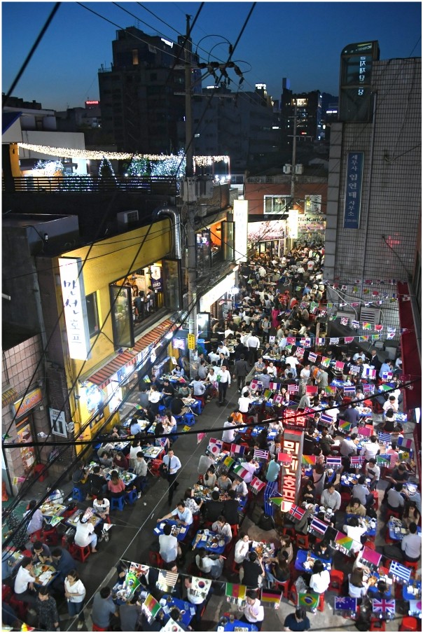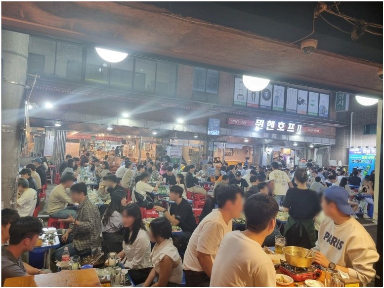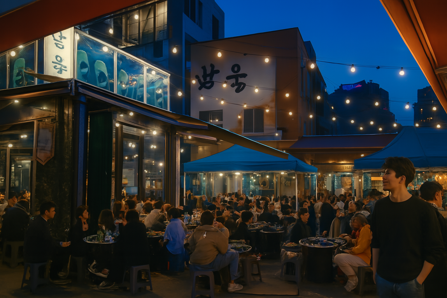 만선호프 본점이 상징적. 노가리·골뱅이무침·생맥으로 가볍게 한잔하기 좋아 야간 데이트 코스로도 인기. 루프탑 운영하는 곳들도 있어 가볼 만한 포인트가 늘었어요.