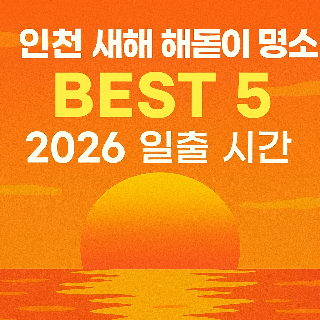 ✅ 일출 시간: 오전 7시 48분 ✅ 도착 시간: 오전 7시~7시 30분 권장 ✅ BEST 5: 정서진 > 마니산 > 을왕리 > 월미도 > 소래습지 ✅ 준비물: 따뜻한 옷, 핫팩, 보온병, 돗자리 ✅ 주의사항: 교통 혼잡, 추위, 기상 확인 ✅ 인증샷: 정서진 노을종, 소래 붉은 풍차, 마니산 참성단