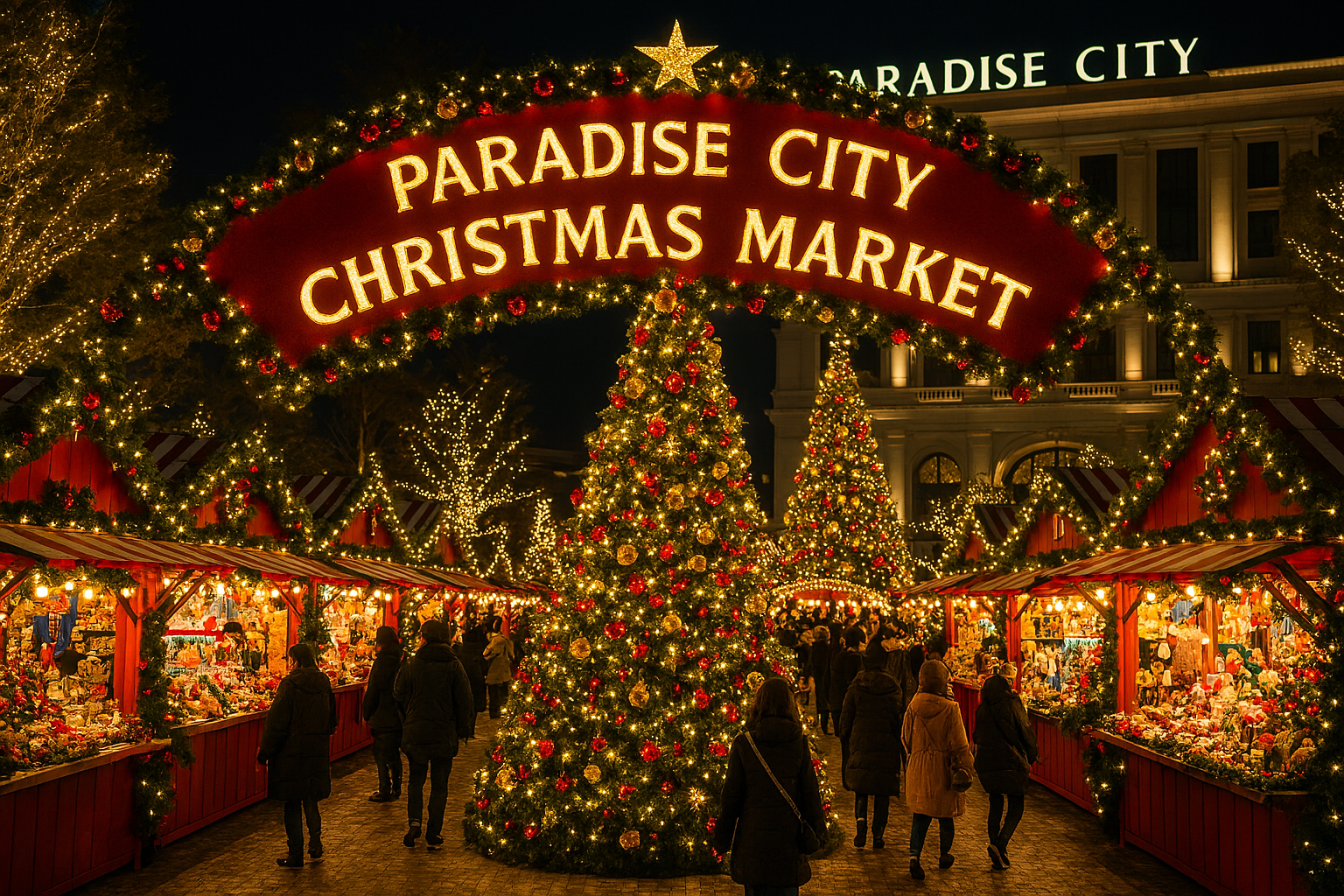 인천 영종도에 위치한 파라다이스시티는 매년 역대급 크리스마스 마켓을 열기로 유명해요. 거대한 광장을 가득 채운 대형 트리와 유럽풍 마켓 부스들은 마치 외국에 온 것 같은 착각을 불러일으키죠. 특히 이곳은 사진이 정말 예쁘게 나와서 SNS 인생샷을 노리신다면 무조건 1순위로 방문해야 할 곳이에요.