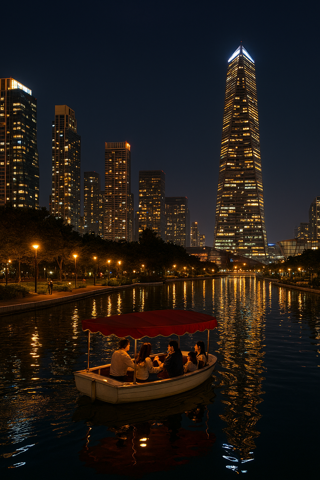 송도의 야경은 크리스마스에 더 빛이 나요. 센트럴파크에서 문보트를 타며 주변 빌딩들의 화려한 조명을 감상해 보세요. 연인과 함께라면 이보다 더 낭만적인 순간은 없을 거예요. 추운 날씨지만 따뜻한 담요를 챙겨가면 딱이랍니다.