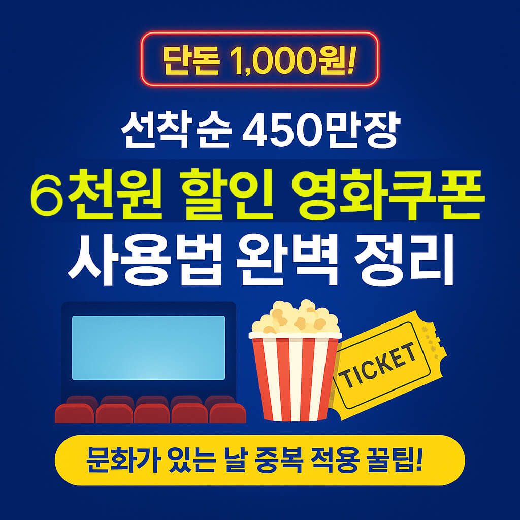 최근 한국에서는 영화 관람을 장려하기 위해 다양한 할인 쿠폰이 제공되고 있습니다. 특히, CGV, 롯데시네마, 메가박스와 같은 주요 영화관에서 사용할 수 있는 6,000원 할인 쿠폰이 큰 인기를 끌고 있습니다. 이 쿠폰은 매주 화요일에 적용 가능하며, 영화 관람을 더욱 저렴하게 즐길 수 있는 기회를 제공합니다.