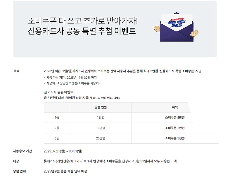- 카드사·은행(예: 신한카드, 카카오뱅크 등) 또는 정부·지자체 연계 캠페인에서 동일·유사 명칭의 이벤트가 병행될 수 있습니다.