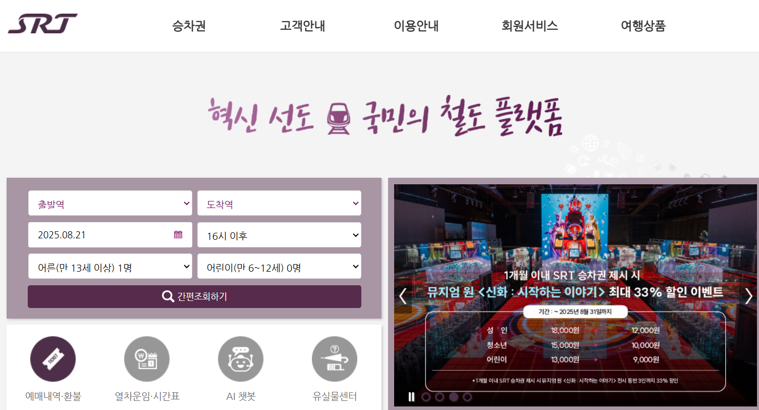 SRT: SRT 앰/홈페이지 '잔여석' 메뉴 확인