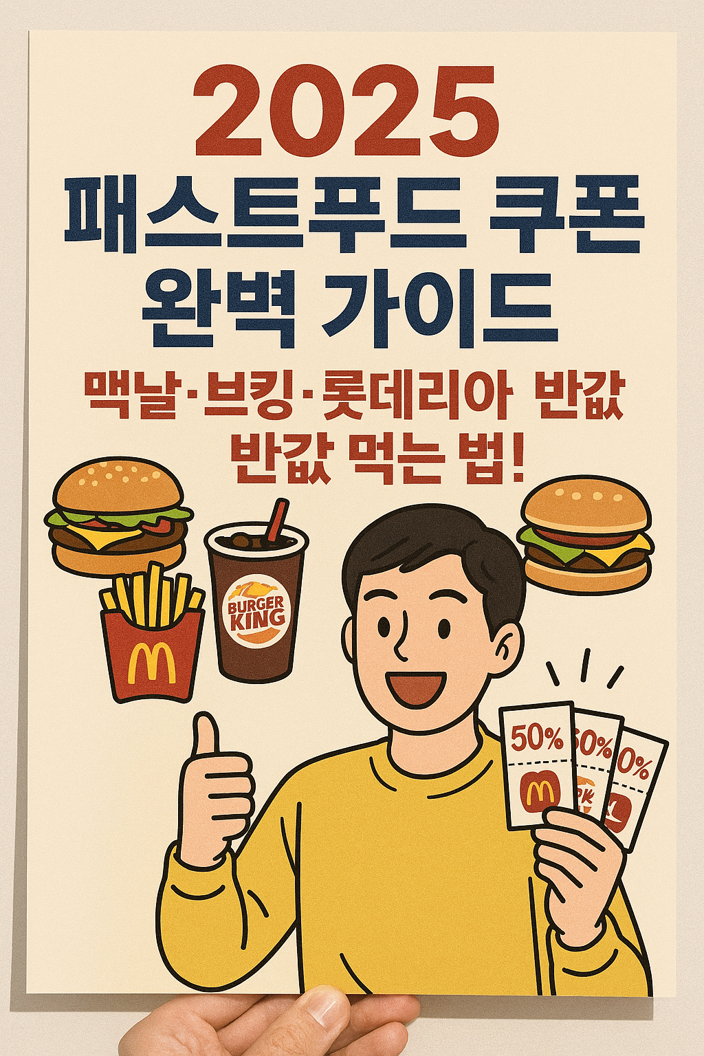 ✅ 한 줄 요약: 패스트푸드 앱 3개만 깔면 매달 5만원 이상 절약 가능! 맥도날드 1+1, 버거킹 와퍼 2,900원, 롯데리아 새우버거 3,400원까지! 쿠폰 다운로드부터 조합 꿀팁까지 완벽 정리!
