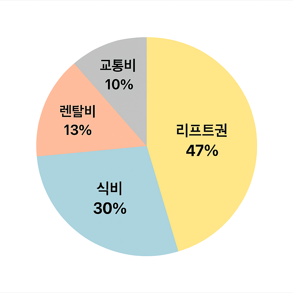📌 [리프트권, 식비, 렌탈비, 교통비가 차지하는 비중을 보여주는 전문 파이 차트]