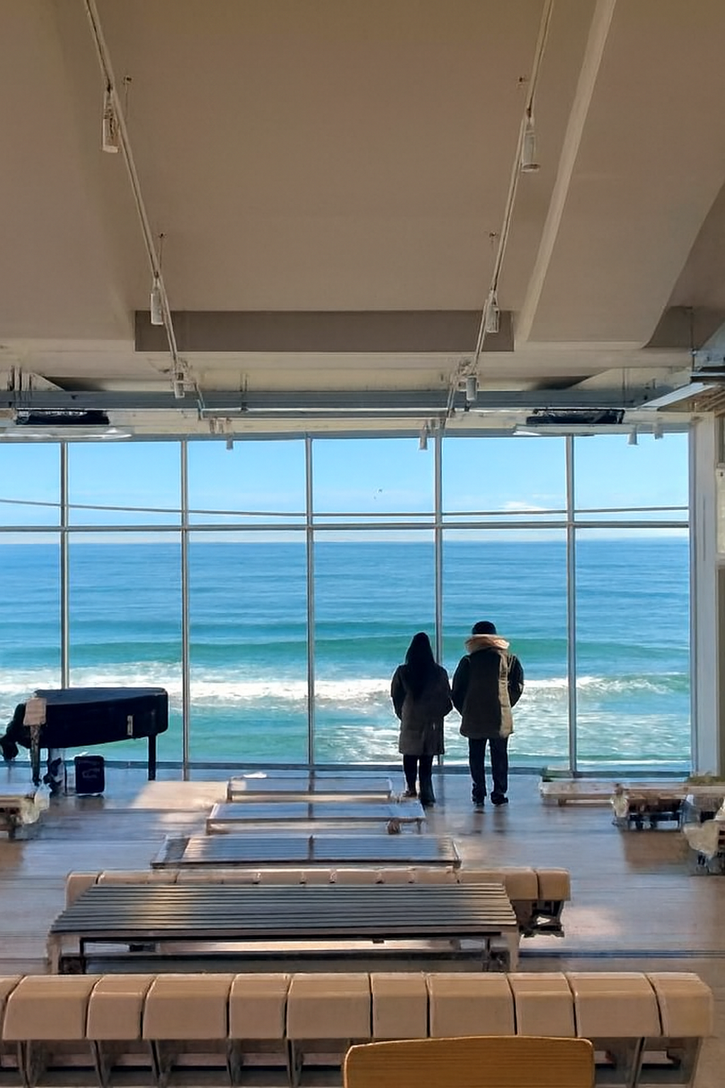 💡 인생샷 꿀팁! 2층 테라스는 추워서 오래 있기는 힘들지만, 잠시 나가서 사진을 찍으면 겨울 바다를 배경으로 인생샷을 건질 수 있습니다. 회색빛 겨울 하늘 아래 파란 바다가 더욱 선명하게 나와요!