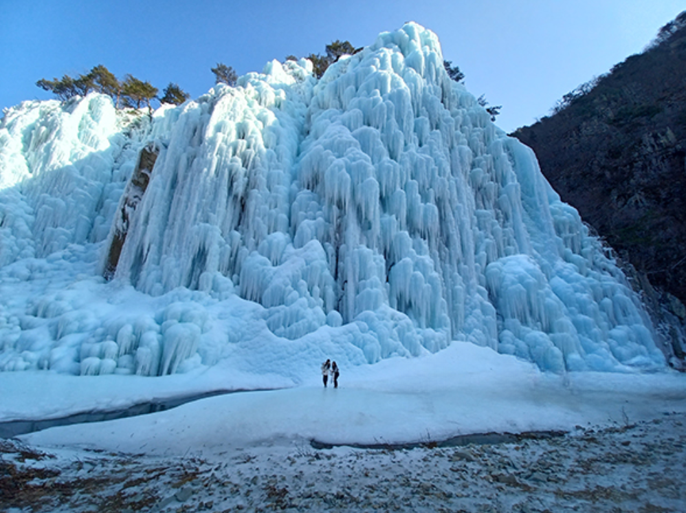 청송 얼음골 빙벽은 자연이 만든 조각품이라 매년 그 모양이 조금씩 달라져요. 올해는 특히 추위가 일찍 찾아와 빙벽이 아주 단단하고 웅장하게 형성되었답니다.