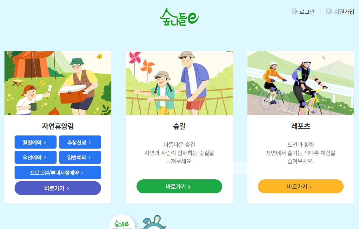숲나들e 회원가입 및 로그인 미리 완료