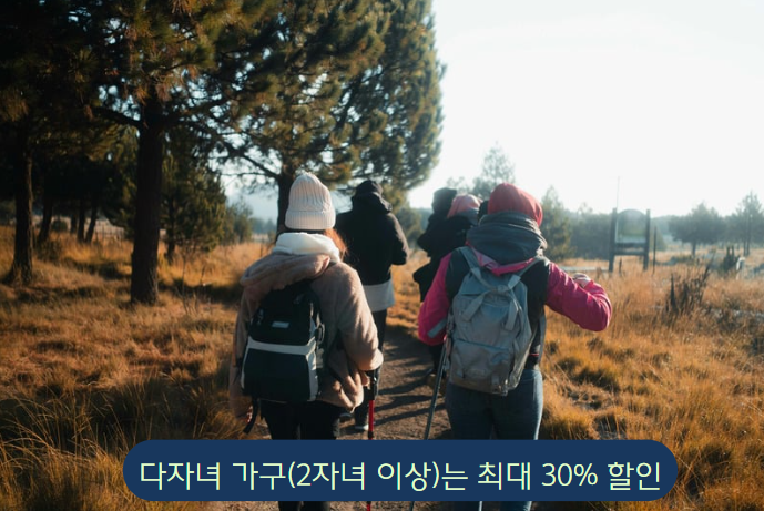| 다자녀 가정 할인 | 30% | 자녀 3인 이상 가정 |