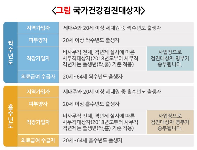 - 올해 내가 건강검진 대상자인지 확인 (출생연도 짝·홀수)